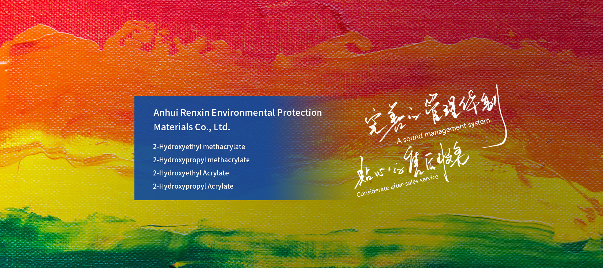 Anhui Renxin Environmental Protection Materials Co., Ltd. specializes in the manufacturing of organic chemicals and fine chemicals. Located in Xinfa Town Industrial Park in Langxi County,Xuancheng City,60km from Nanjing Lukou International Airport, 50km from Liyang, our company is easy of access. Covering an area of 38,000sqm, our company has over 100 employees. We built a modernized small science research institute and pilot plant and established long-term technical cooperative relationship with several universities...